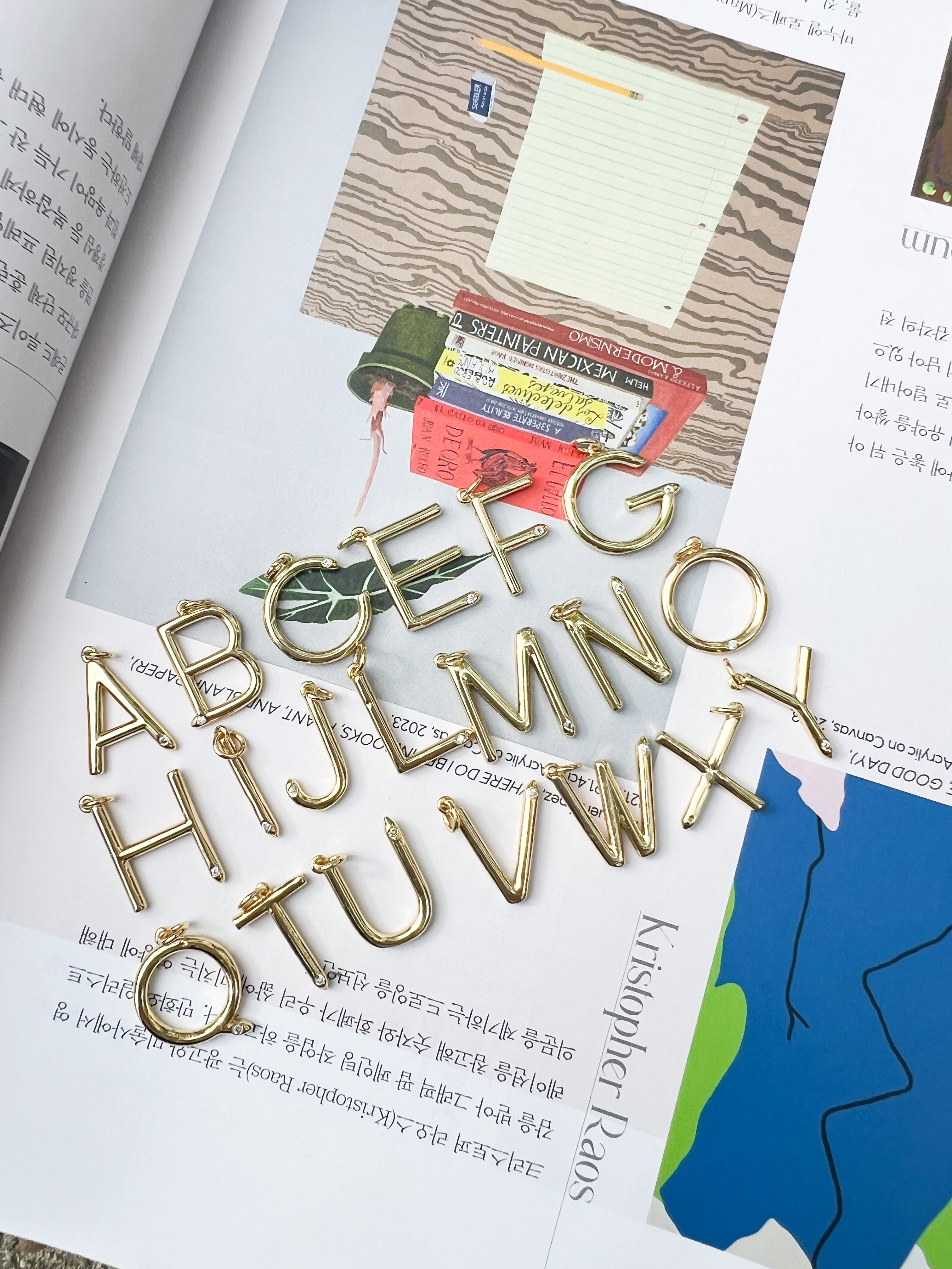 14k gold fill letter charms with a small cz stone accent. Measuring 1 inch in height.