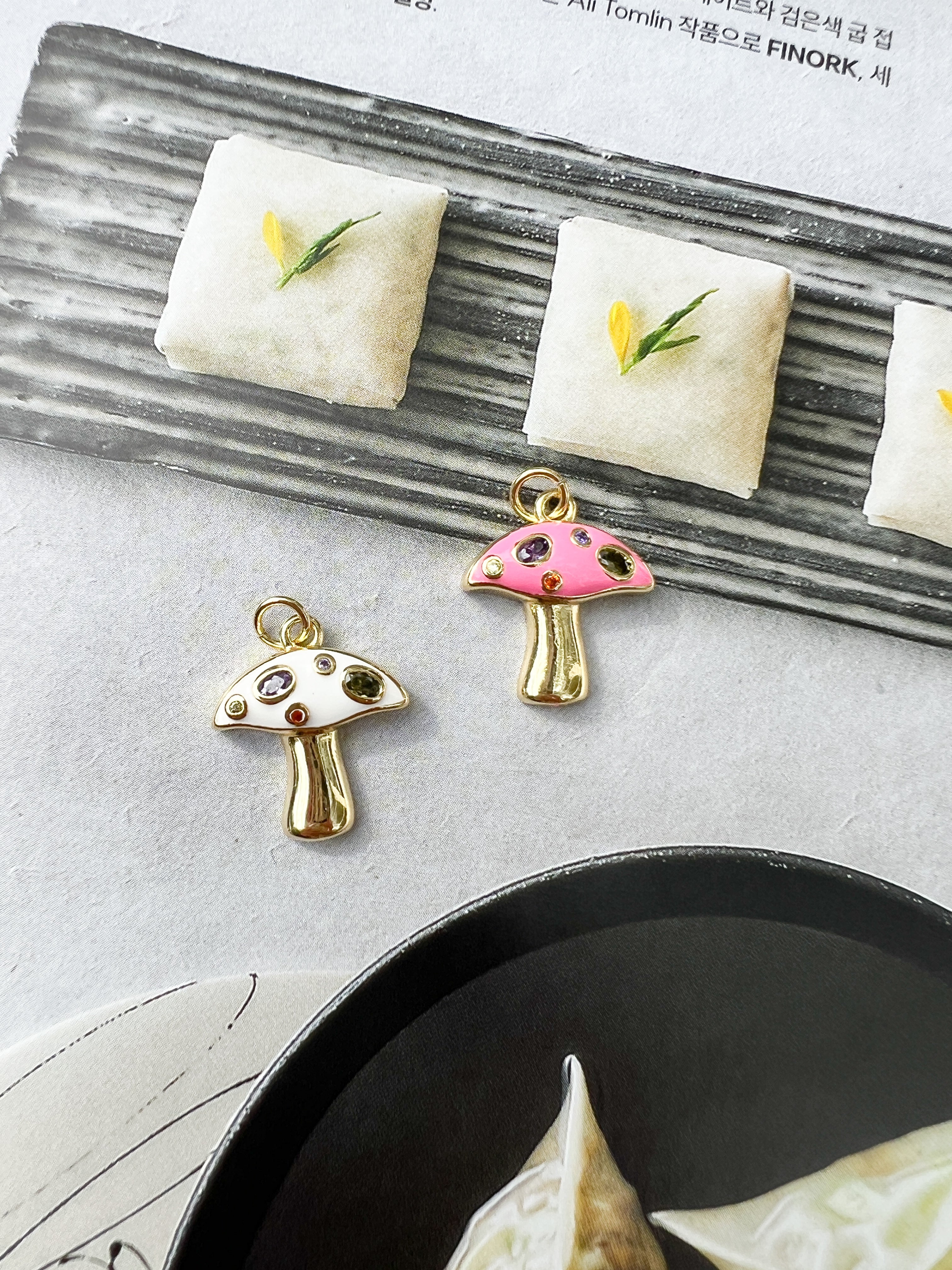 18K Gold Filled Mushroom Pendant with Pink Enamel and cz stone accents.