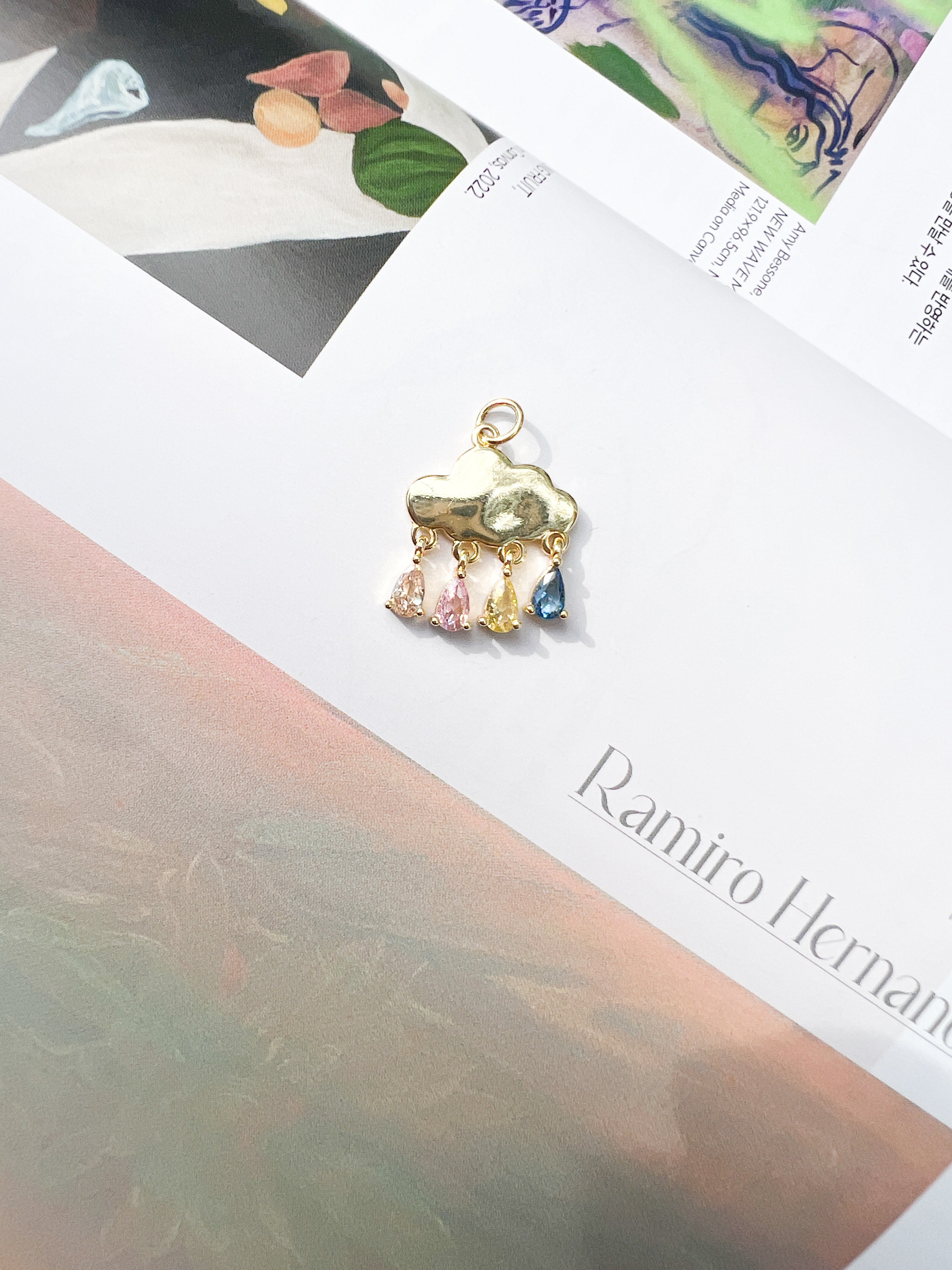 24k gold filled clous charm with tear drop pastel cz gemstone accents.