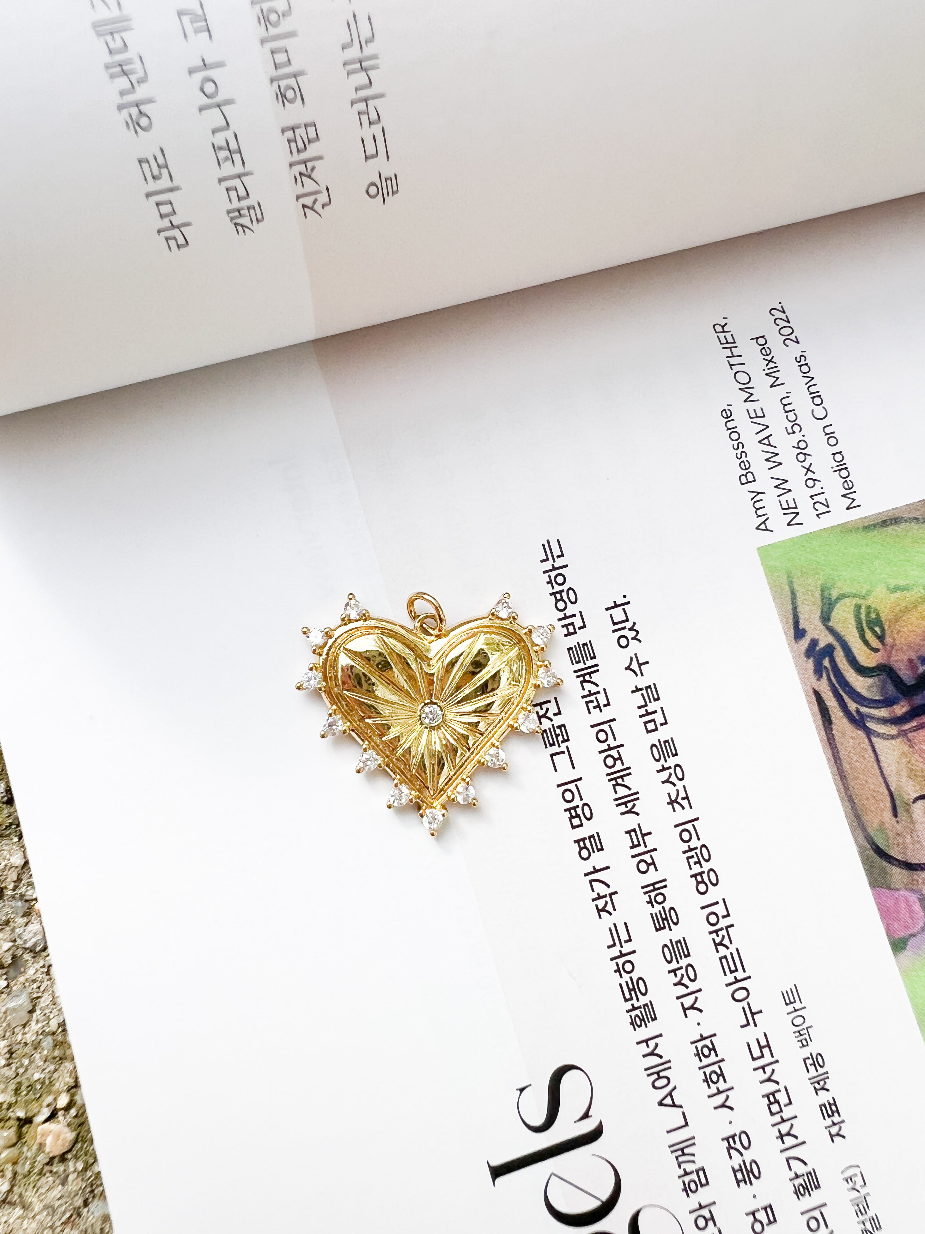 18k gold filled heart pendant with CZ stone accents outlining the heart.