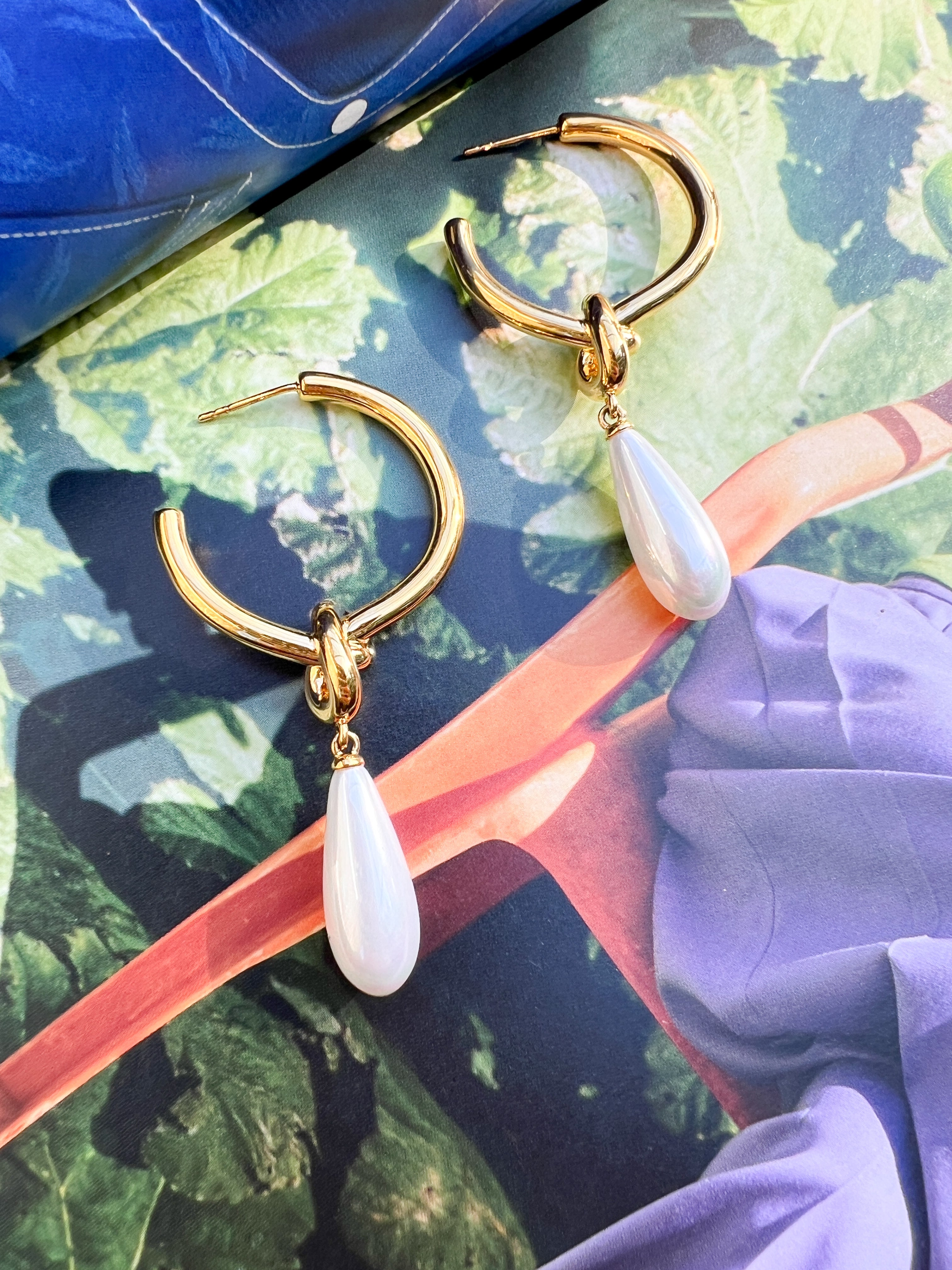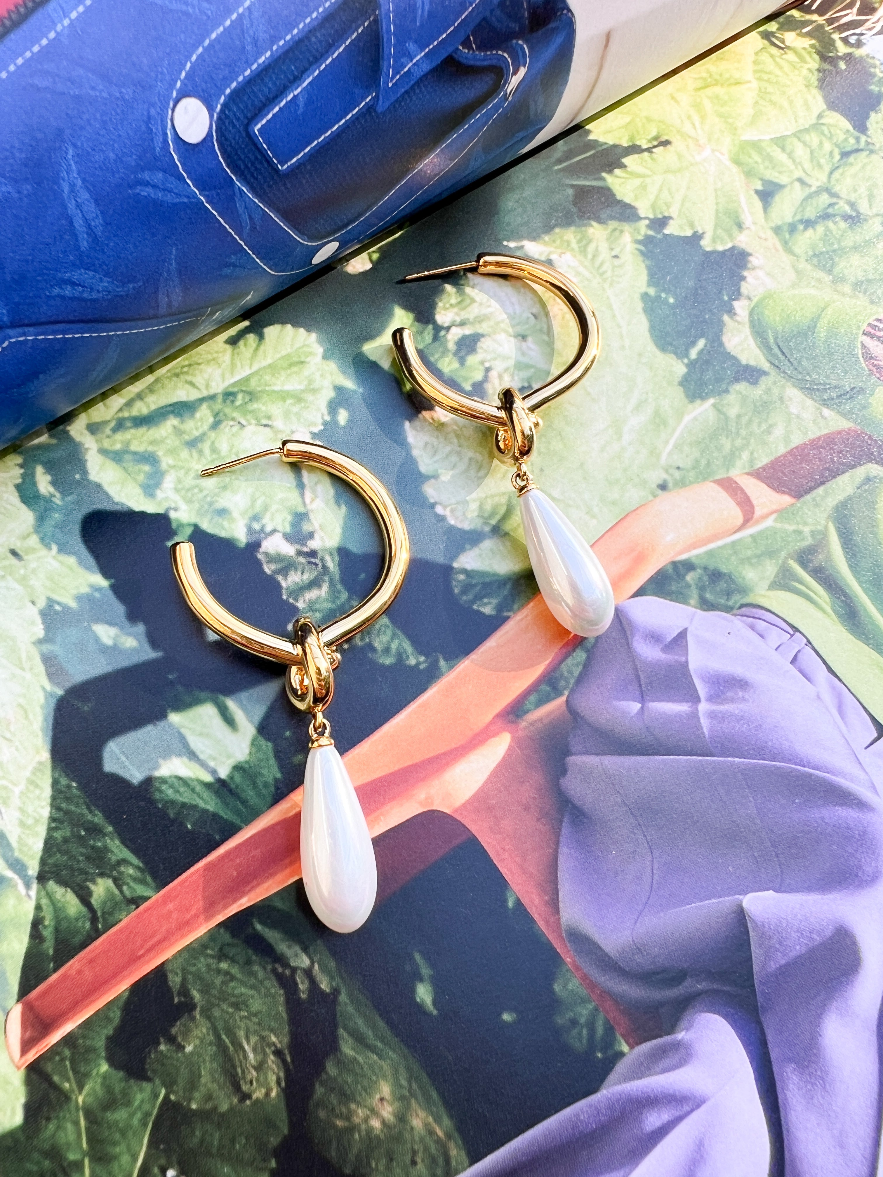 These earrings are perfect for any occasion, from a night out to a special event. They will add a touch of sophistication to any look. Shop the Holly Pearl Drop Knot Hoops now at Hello Edie and add a touch of glamour to your wardrobe.